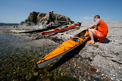 Efter att ha gjort stora delar av sydöstra skåne under 24 timmar åkte jag upp och besökte Erik och Pia i Knäckebrödhult. Erik och jag bestämde oss för att paddla till Hallands väderö under fredagen. Här har jag varit en gång tidigare men då utan kajak. Björn Thomasson anslöt sig till oss. En för mig ny och riktigt trevlig bekantskap. Björn har många strängar på sin lyra och han verkar bra på det mesta han tar sig för. Hallands väderö bjöd på vacker och omväxlande natur, pollen och sotarglass. Jag såg själv inga sälar men njöt till fullo av att paddla Pias? Dex i medsjö. Kanske kan Dexen vara ett alternativ till Silhouetten?